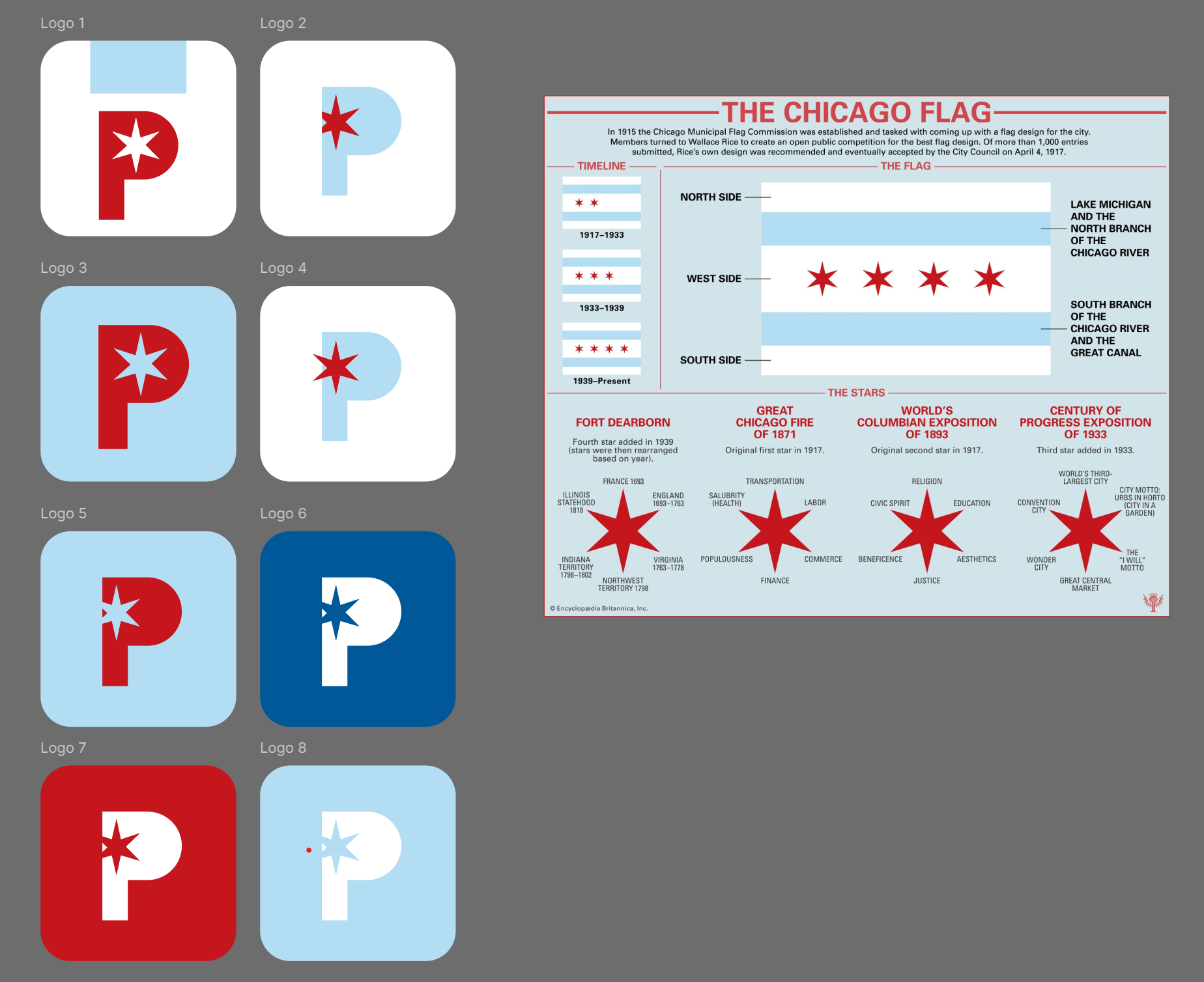 I started by investigating colors to be used or components by taking reference from the official color palette for the City of Chicago. The original app is green, which didn't seem to accurately represent the iconic blue hues of Chicago.