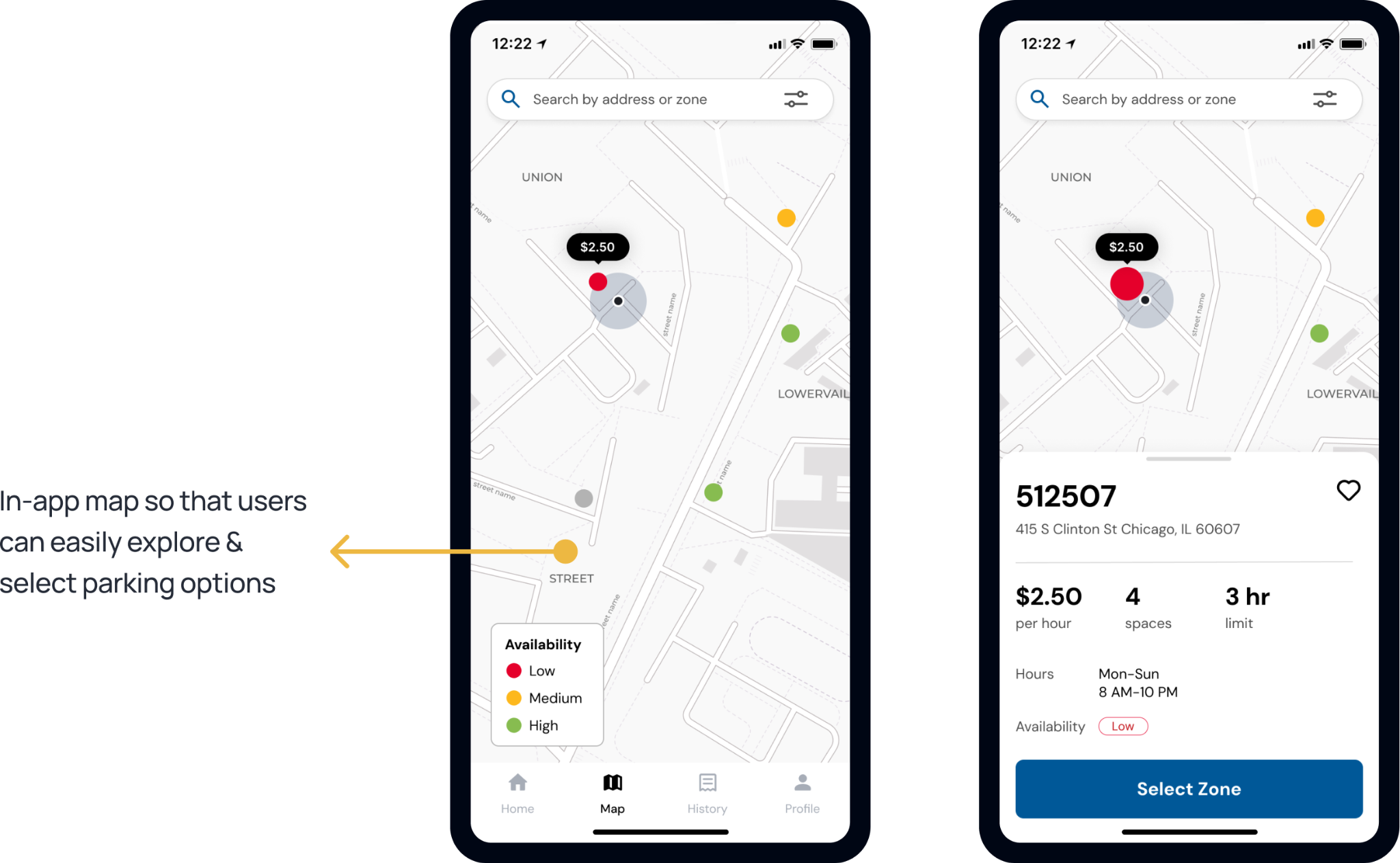 While a separate Park Chicago Map app exists, most participants were unaware of it. This forced users to rely on memory, signage, or external apps, increasing cognitive load at an already stressful moment.